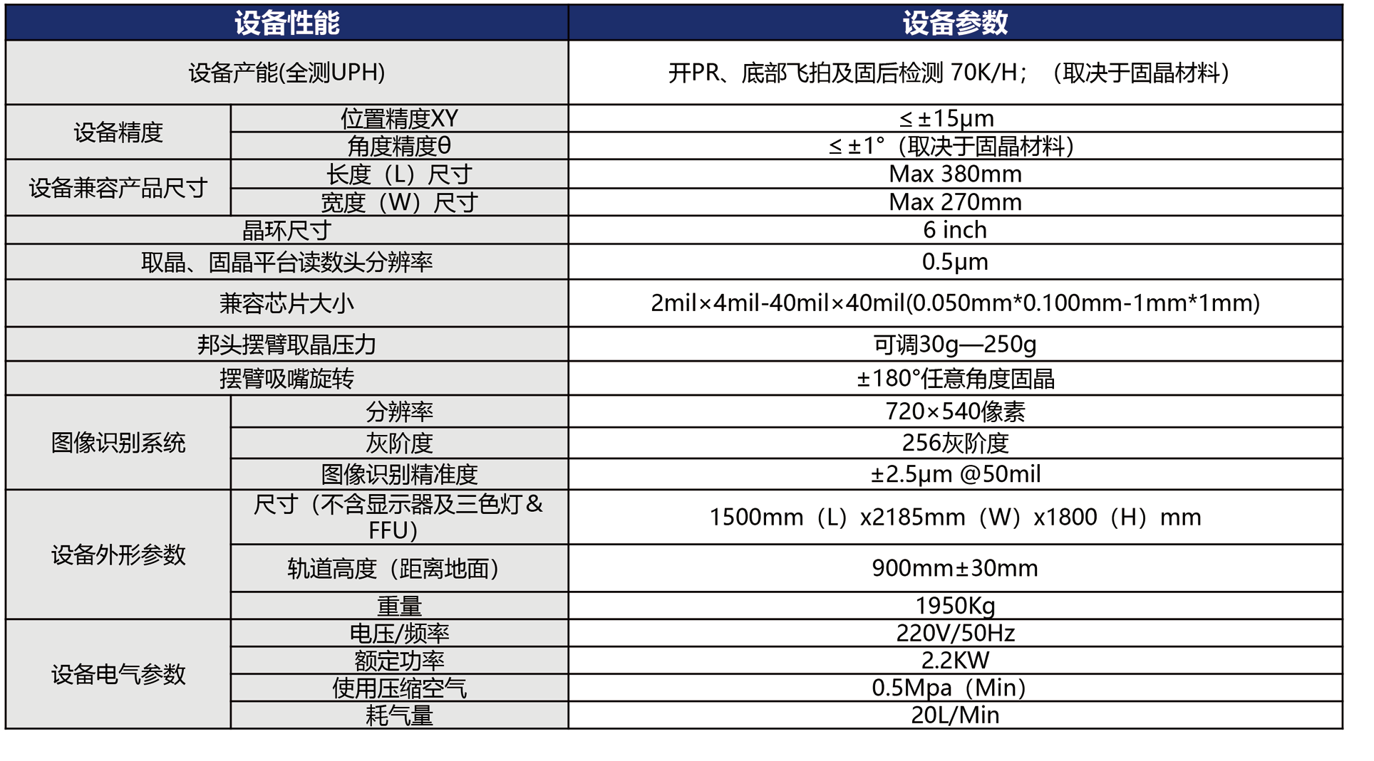 - 采用高速、高精度的取晶及固晶平台;